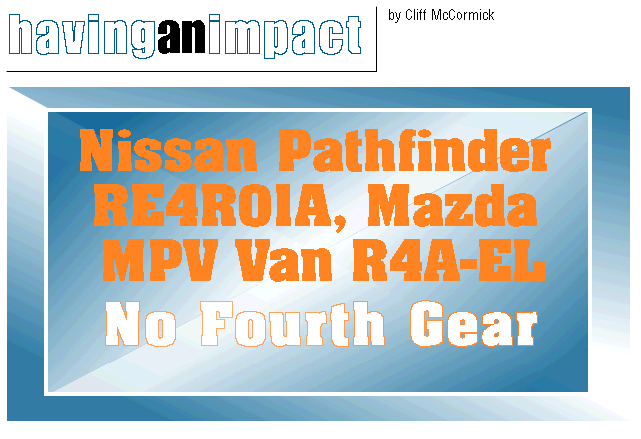 1. Check for retained trouble codes in the transmission controller's memory. This is something easily done from the driver's seat, and can lead you straight to the cause of the no-fourth-gear problem. This procedure is covered in Gears Magazine, Fall/1993 issue and again in Issue #10, July 1994-as well as many service manuals.