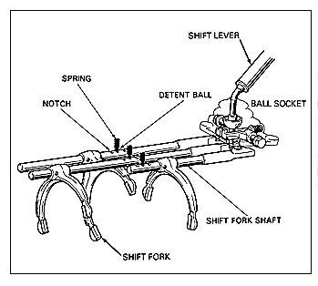 Worn, cracked, loose shift forks, bent or galled rails, burred or broken detents, or collapsed springs will all prevent adequate synchronizer travel (figure 5). Worn shifter bushing, a worn or loose shift finger on the stick, worn or out-of-round ball seats on the shift housing, and misadjusted or stretched shift cables will all contribute to shift problems. In short, any combination of excess play or slop in the shift mechanism will defeat your best intentions.
