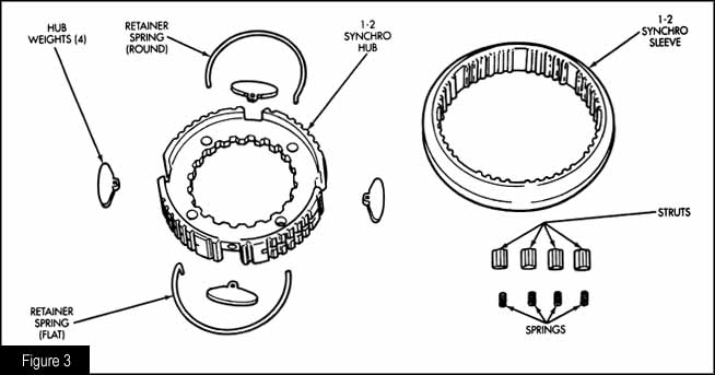 The 1–2 synchronizer also has a set of spring-loaded flyweights in the synchro hub that govern shift speeds, to prevent overrevving the motor on a 2–1 downshift (figure 3). The 4500 weighs in at 195 pounds dry, and has a lube capacity of 8.5 pints of Castrol Syntorq synthetic gear lube. Two ratios are currently available (figure 4).
