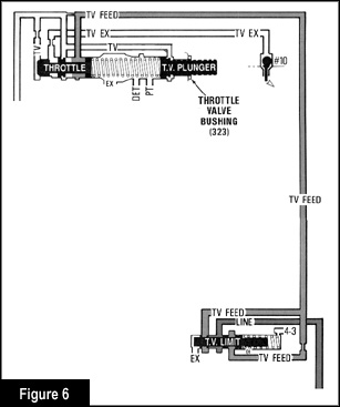 You can increase the TV system performance across the board by modifying the oil pressure that feeds the TV system. The valves that control the throttle valve’s feed pressure are usually called TV Limit, or Shift TV valves (figure 6).