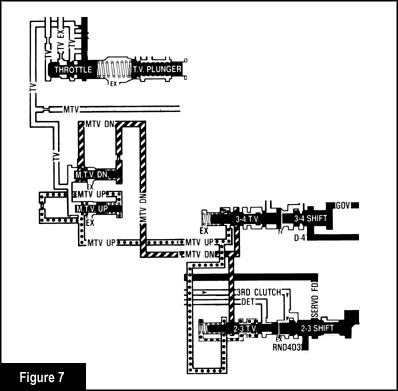 1. Modulated TV (MTV) Upshift and Downshift valves found on many later model GM front and rear wheel drive units (figure 7). These valves are part of shift speed control.