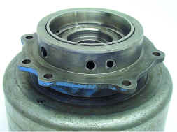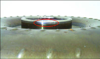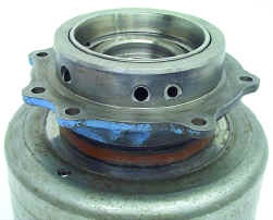 Our test converter hub shows the contact point between the converter hub and an OE seal lip installed in typical fashion (figure 2). This contact point is very near the end of the hub, and in operation the hub may pull partially out of the seal, causing a substantial front leak.