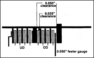 When you check overdrive clutch clearance, the pressure plate is down against the bottom snap ring. If the observed clutch clearance is 0.050" with the pressure plate down, there's really only 0.035" clearance when the pressure plate pushes up against the top snap ring; far too tight for proper operation (figure 2).