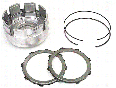 But if you need to change the drum, pressure plate or snap rings, or you have one of the problems listed above and no apparent cause for the problem, throw away the drum, pressure plate and both snap rings. The last change to these parts, listed at the beginning of this article, has resulted in a kit you can buy from the dealer. It includes the input drum, both snap rings (of the latest thickness) which don't break, and two OD/UD pressure plates of different thickness. These plates are two of the four that were previously available to adjust UD clutch clearance. Chrysler has determined, of the four plates available, these are the two most commonly used plates, so they give you both of them in the kit.