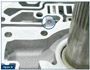 In 1989 the E4OD pump was introduced with a rough forge casting number RF-E9 (figure 1a and b). Soon after, in 1991, the stator support was redesigned; it had a rough forge number of RF-F1 (figure 2). The pump body, however, remained the same.