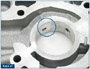 3. The converter charge pressure exhaust orifice was eliminated; however, the area where the orifice would be installed still has stake marks, so don't be deceived (figure 18).