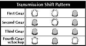 The far right LED indicates the signal to the converter clutch (TCC) solenoid.