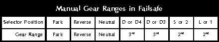 Here’s the manual shift pattern you can expect with the transaxle in failsafe: