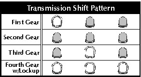 The far right LED indicates the signal to the converter clutch (TCC) solenoid.