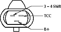 While gears 1 through 3 operate hydraulically, you can energize overdrive and the TCC solenoid. Start the engine, and put the unit in gear. Give it gas until the transmission shifts into 3rd gear. Then complete the circuits as shown to shift the unit into 4th gear and to energize the TCC.