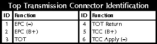 To shift into fourth gear, the computer grounds solenoid 1. Solenoids 1 and 3 are gounded; solenoid 2 is open. To apply the converter clutch, apply power to terminal 5 and ground terminal 6 of the top connector.