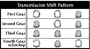 The far right LED indicates the signal to the converter clutch (TCC) solenoid.