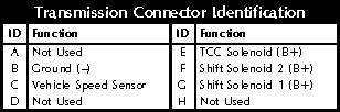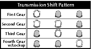 The far right LED indicates the signal to the converter clutch (TCC) solenoid.